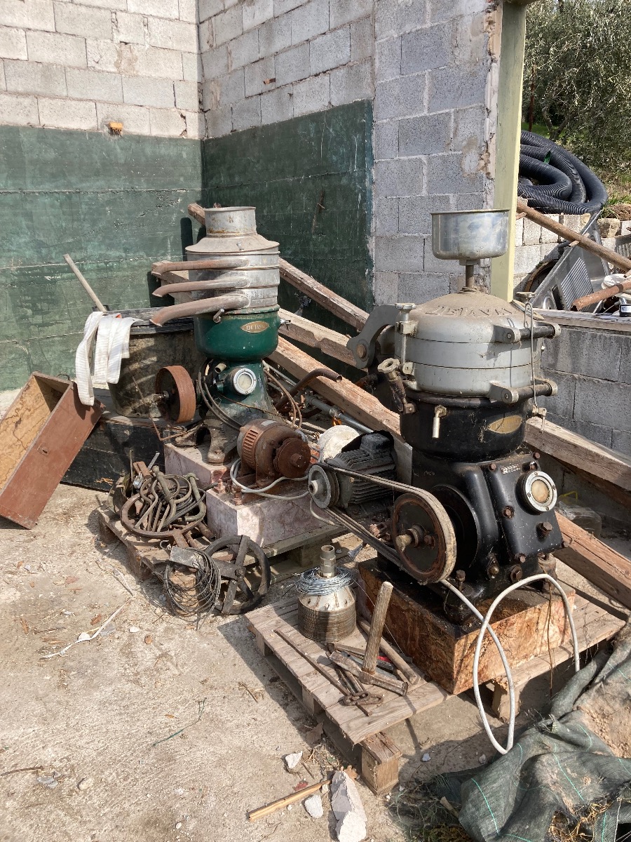 Ich suchte ihn sofort auf und fand vor Ort zwei herrliche Zentrifugen aus der ersten Hälfte des 20. Jahrhunderts. Sie hatten seinem Vater gehört, der Eigentümer einer Ölmühle in Garda war.