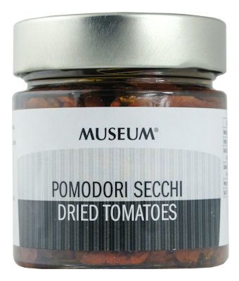 Zutaten: Getrocknete Tomaten 65% Herkunft Italien, Olivenöl 30%, Weinessig (enthält SULFITE), Salz, Oregano, Basilikum.