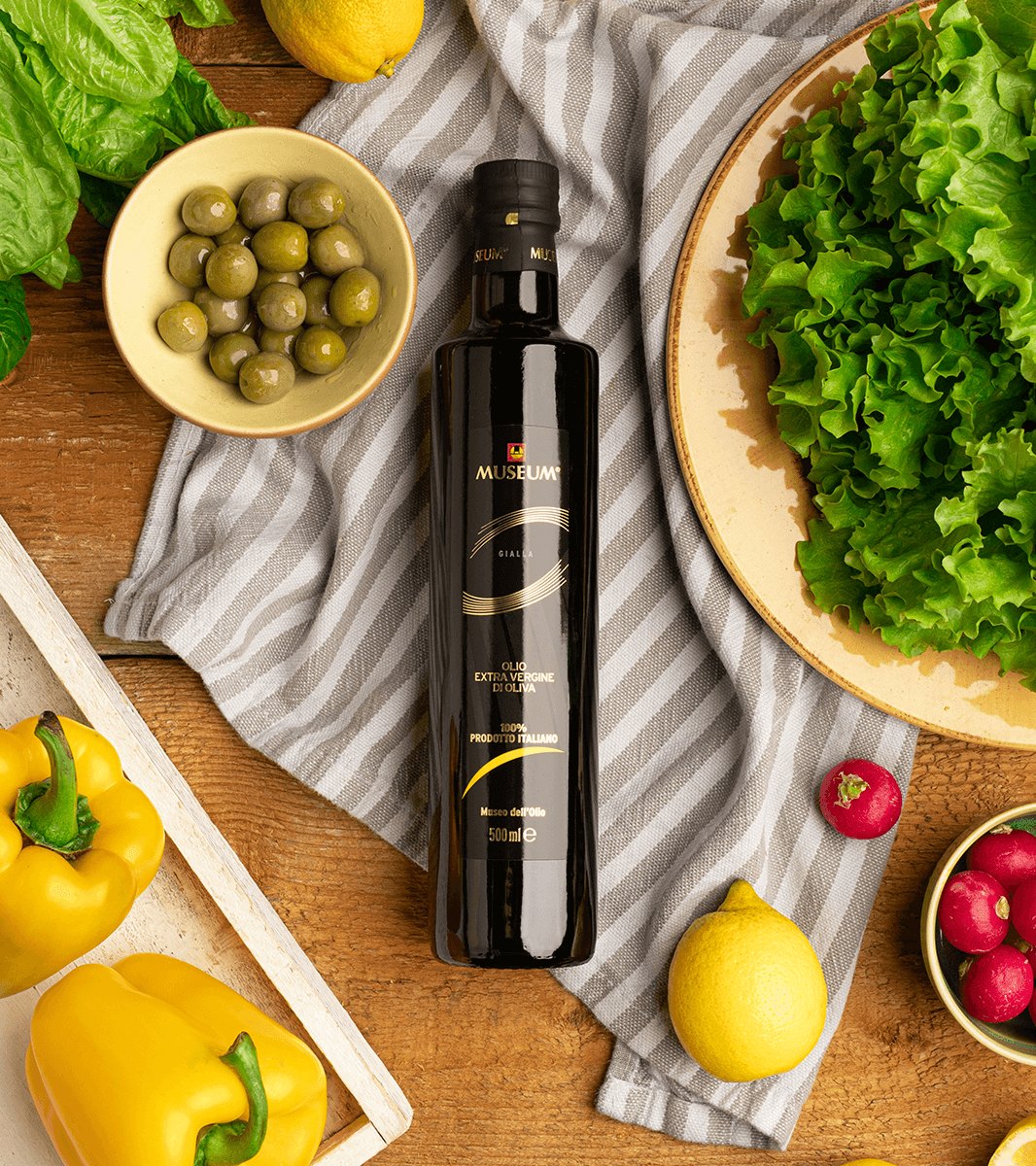 Yellow label extra virgin olive oil is an oil that is mainly used raw, particularly suitable for all dishes with a stronger flavour. Excellent on first courses, grilled vegetables and meat, pulses, salads, crudites and dips and carpaccio.