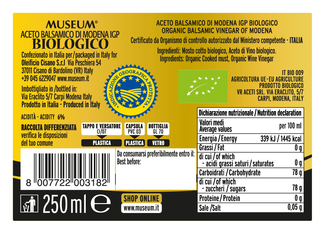 ACETO BALSAMICO DI MODENA IGP BIOLOGICO