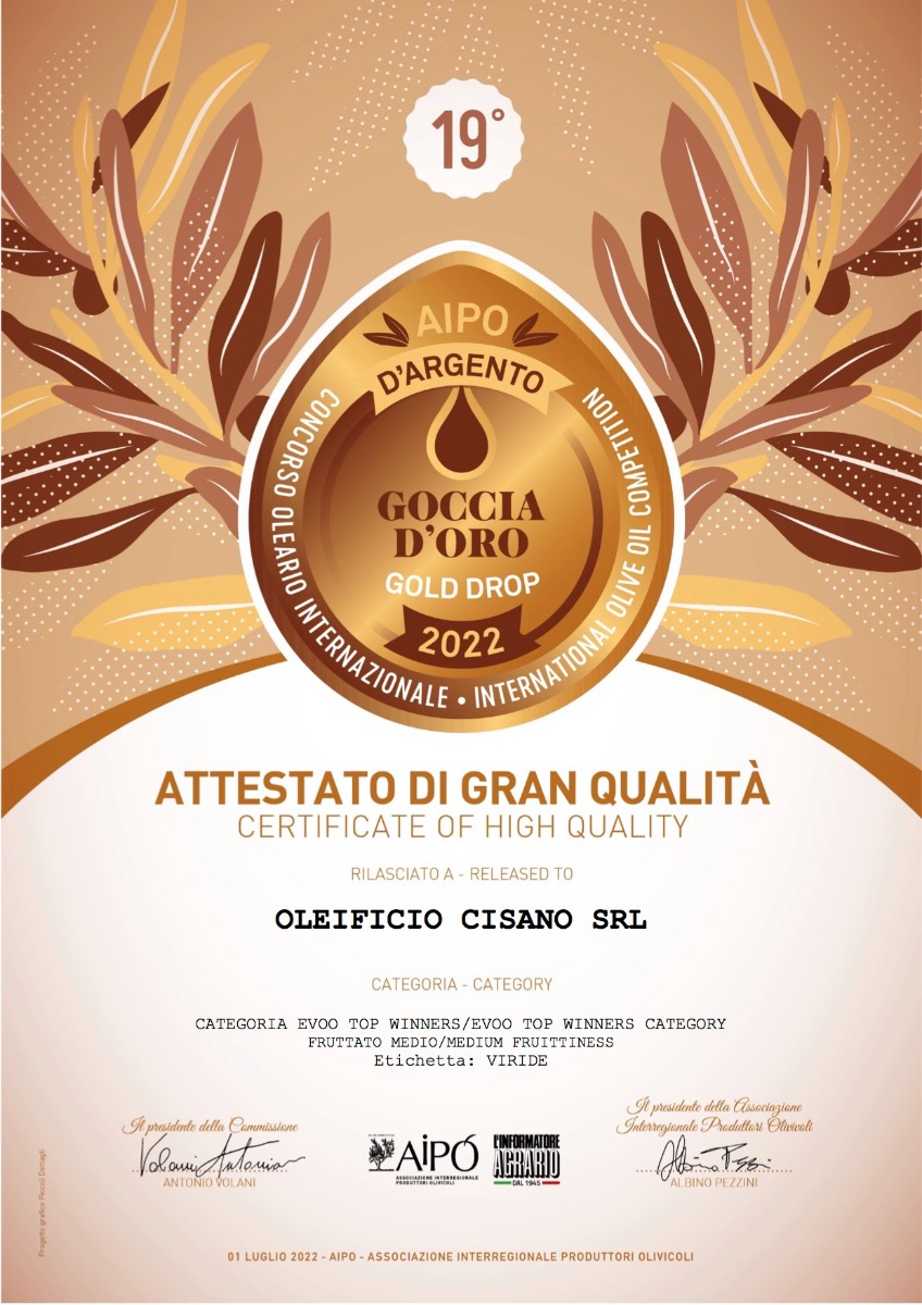 Siamo orgogliosi di comunicare che i nostri oli extravergini etichetta Nera e Viride, si sono aggiudicati il prestigioso riconoscimento Goccia D'Oro nel concorso AIPO d'Argento 2022.