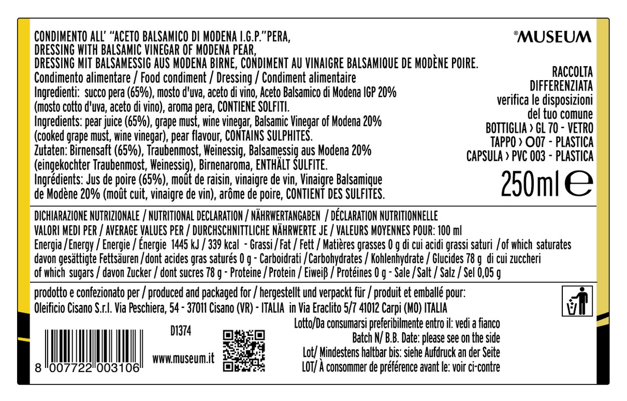 CONDIMENTO ALL’ACETO BALSAMICO DI MODENA IGP E PERA